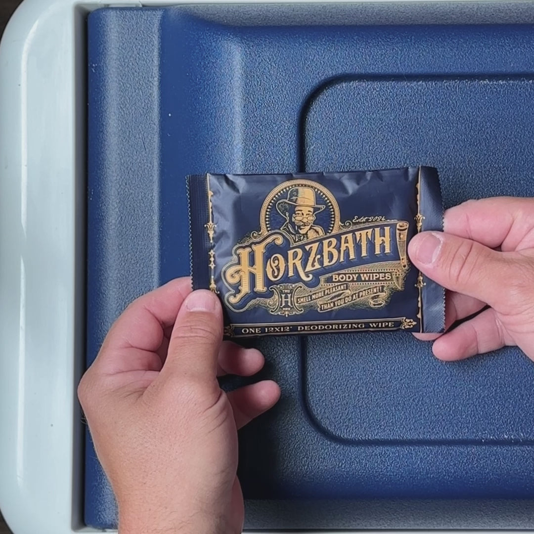 "Want a Horzbath?" It's a shower in a wipe and a joke in your pocket!